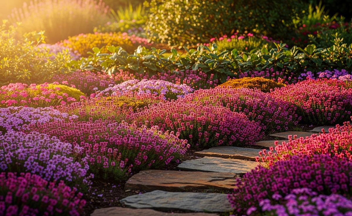 - Wegränder/Fugen: Thymus als trittfester Saum; Phlox für Trockenmauern und Bordsteine, niedriger Schnittaufwand.